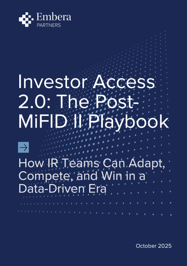 Investor Access and efficient investor engagement has become a major issue for global corporates, especially small- and mid-cap issuers. Embera Partners has investigated the status quo around this important issue, conducted major research with students of FH. St.Pölten’s Digital Business Communications & IR majors in 2025, evaluating the challenges, best-practice requirements, the best roadshow-partners and ways to effectively organize, execute and track success for broker-led and independent investor engagement. Download here to get a copy of the results of our comprehensive research report.